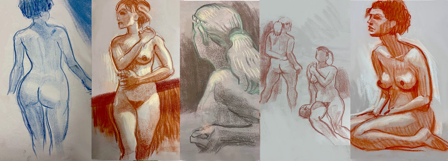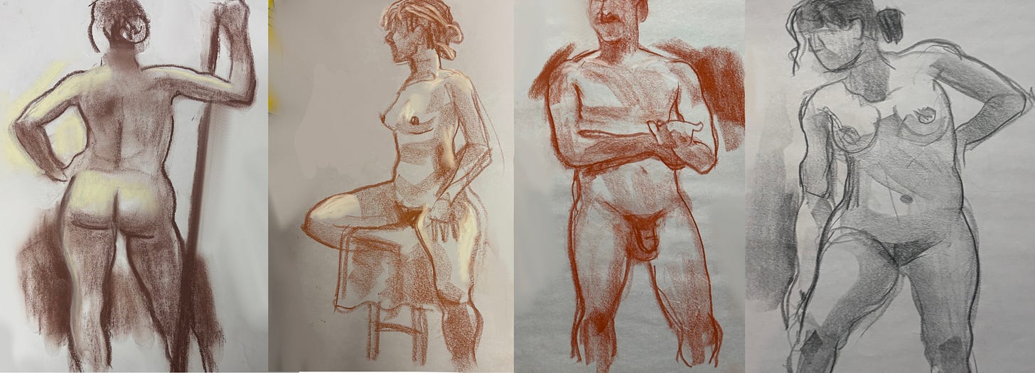 Here are a few examples. Not great, but not bad (the bad ones I won’t show!) The models pose in a series of 2-, 5-, 10-, and 15-minute sessions.